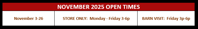 New this fall: Fridays in November, visitors can casually visit the barns and farm. No wagon rides or interactive activities. Farm Members are free and public is $5 per person.