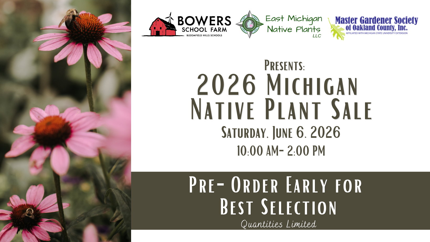 Help us support our local ecosystems with native plants in your garden this year! Join Bowers School Farm and East Michigan Native Plants for our 2026 Michigan Native Plant Sale. We have a wide variety of grasses and wildflowers for purchase with some changes from last year.