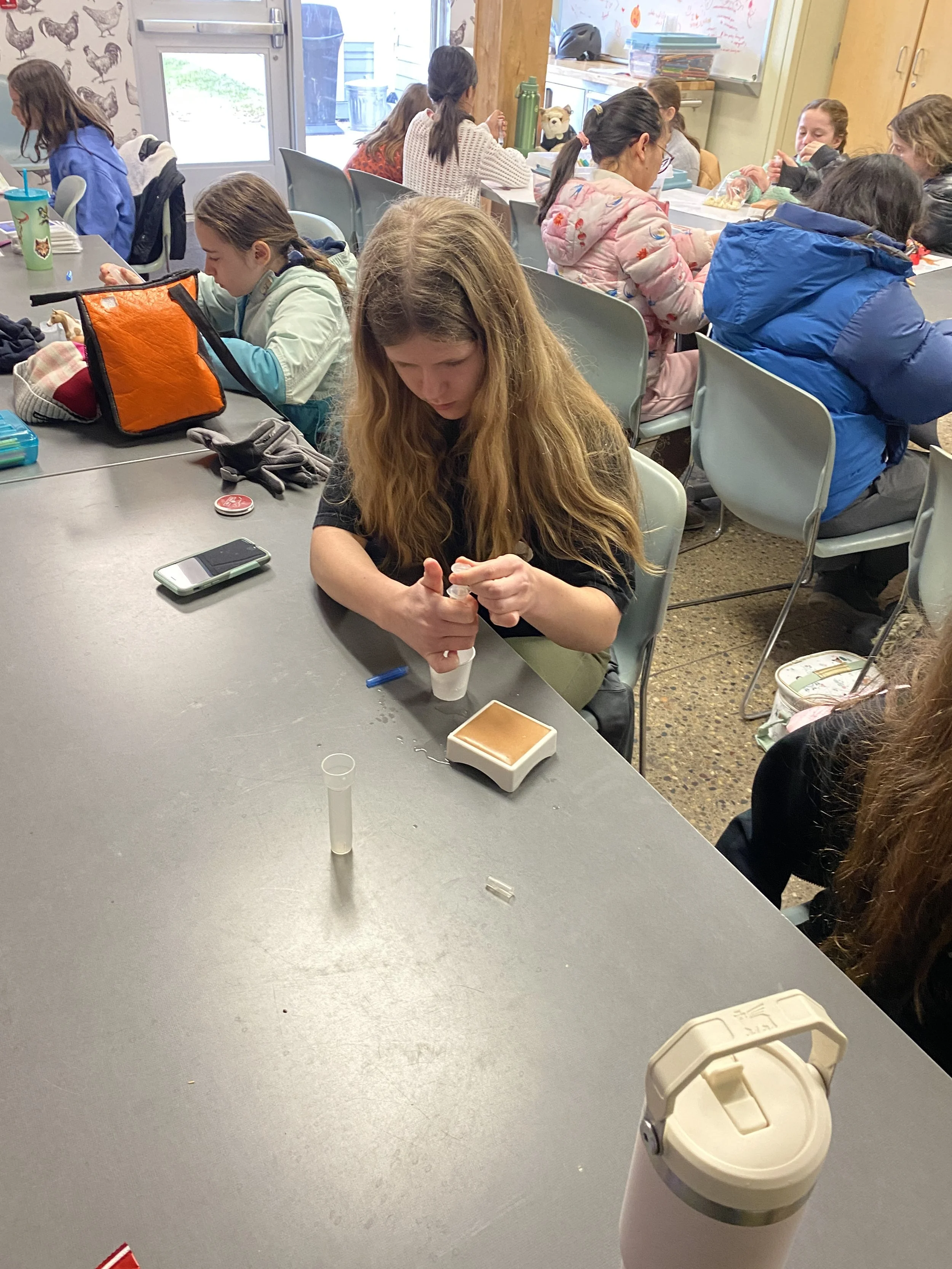 We kicked off the day with an exciting and informative equine first aid session. Campers learned how to listen to a horse’s gut sounds—a crucial skill for detecting active digestion and ensuring a horse’s health. They also practiced measuring a horse's height and weight and learned how to take vital signs, such as temperature, capillary refill time, respirations, and heart rate.